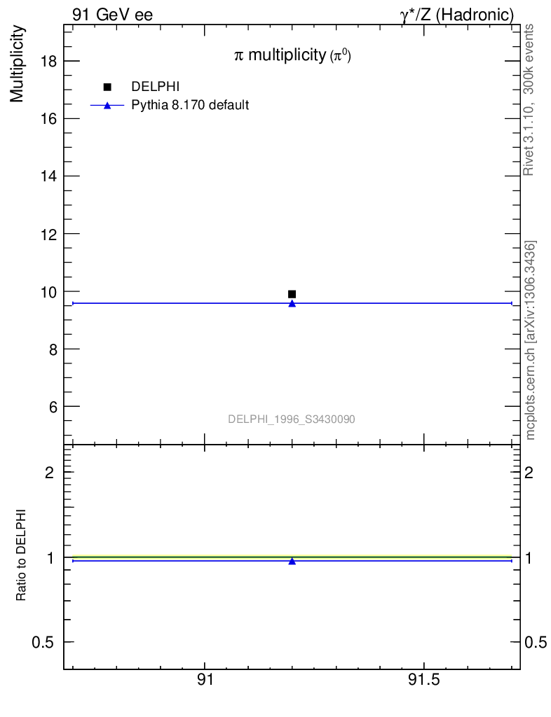 ee : γ*/Z (hadronic) : Identified Particles : π multiplicity