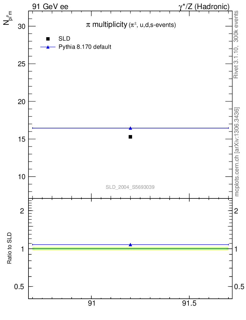 ee : γ*/Z (hadronic) : Identified Particles : π multiplicity