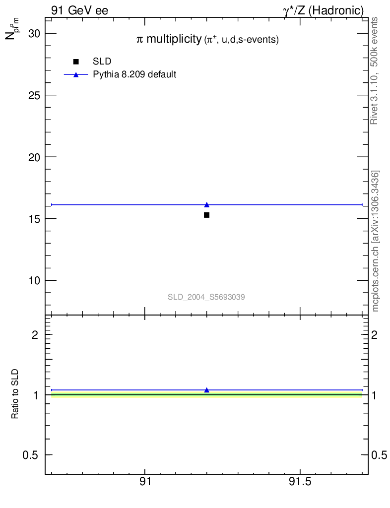 ee : γ*/Z (hadronic) : Identified Particles : π multiplicity
