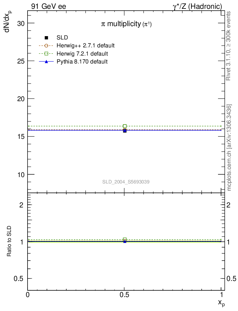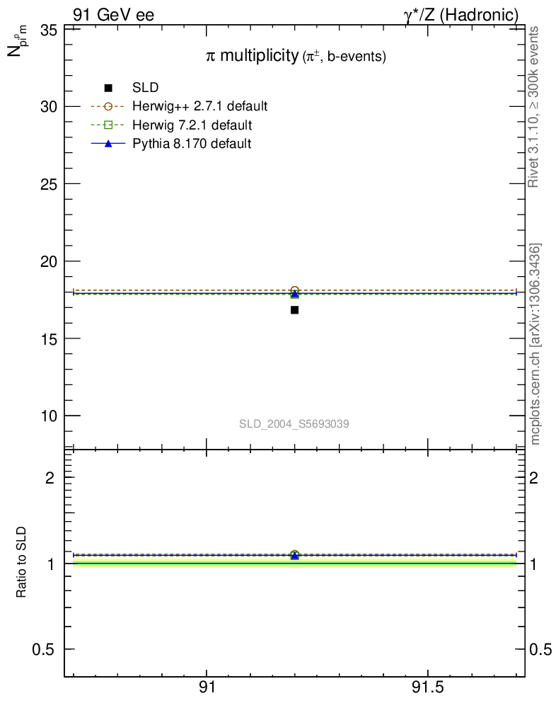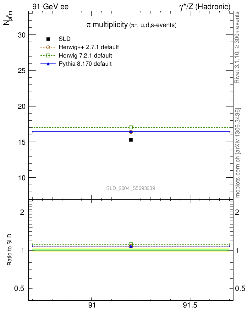 ee : γ*/Z (hadronic) : Identified Particles : π multiplicity