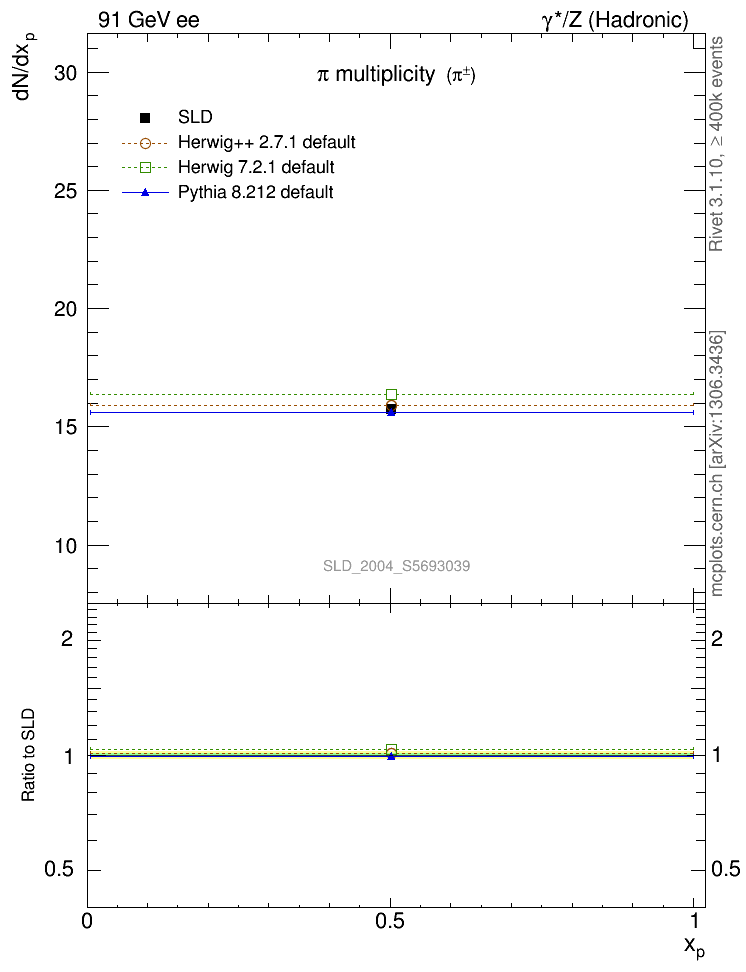 ee : γ*/Z (hadronic) : Identified Particles : π multiplicity
