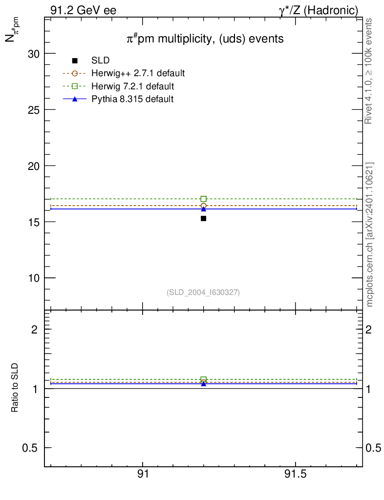 ee : γ*/Z (hadronic) : Identified Particles : π multiplicity