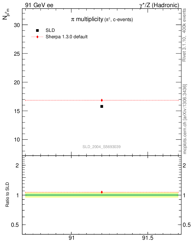 ee : γ*/Z (hadronic) : Identified Particles : π multiplicity
