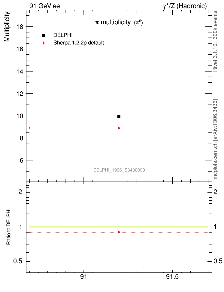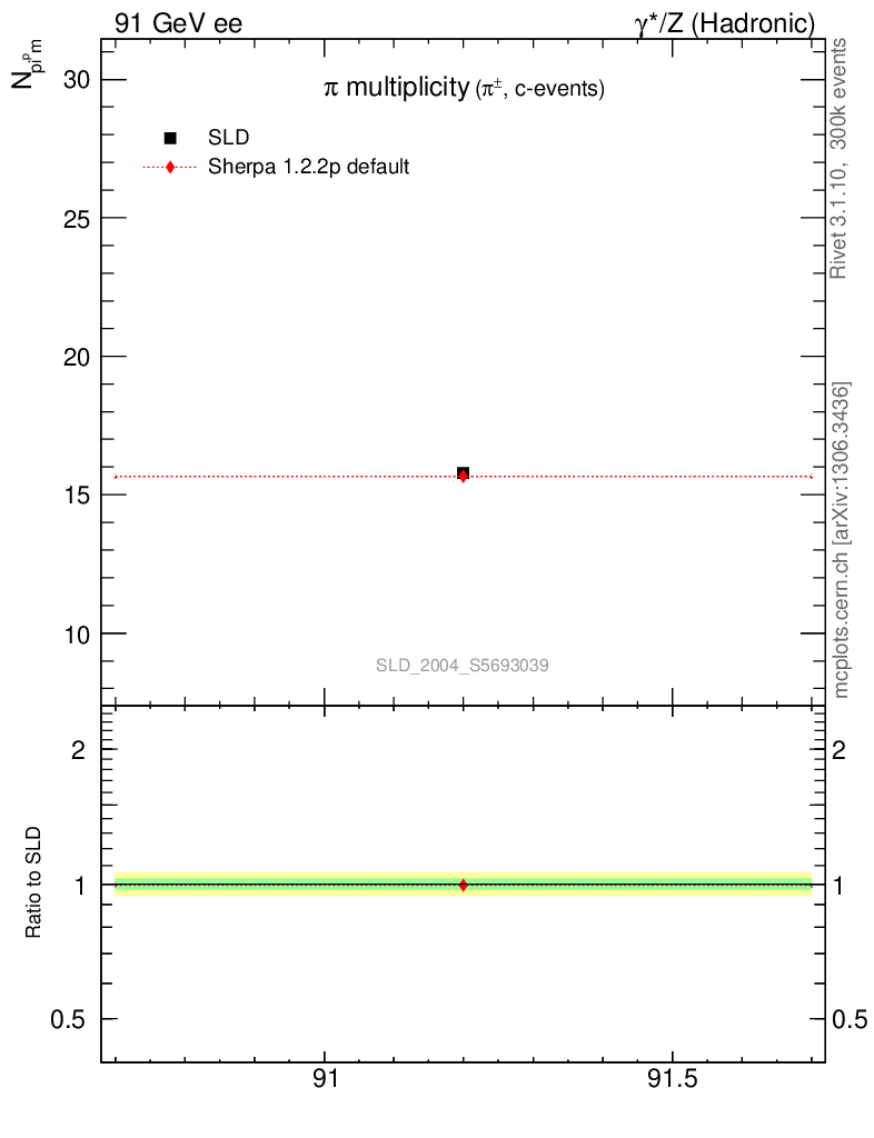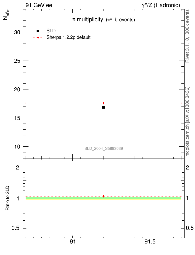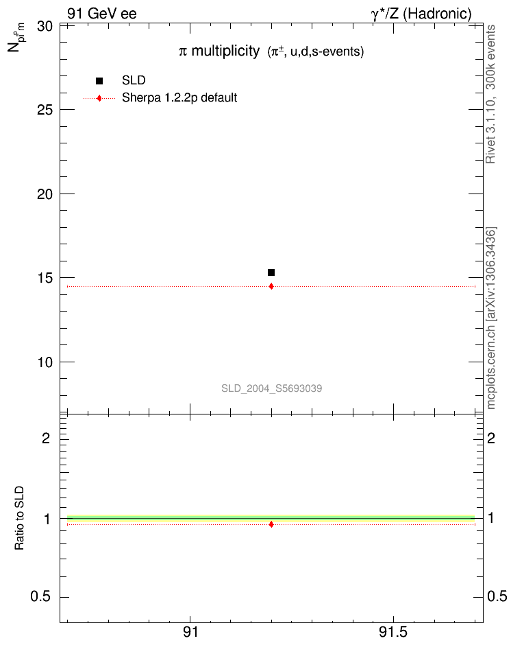ee : γ*/Z (hadronic) : Identified Particles : π multiplicity