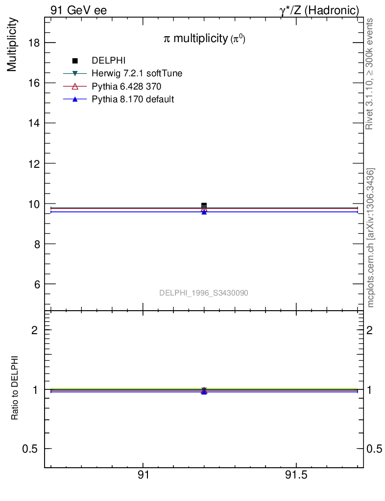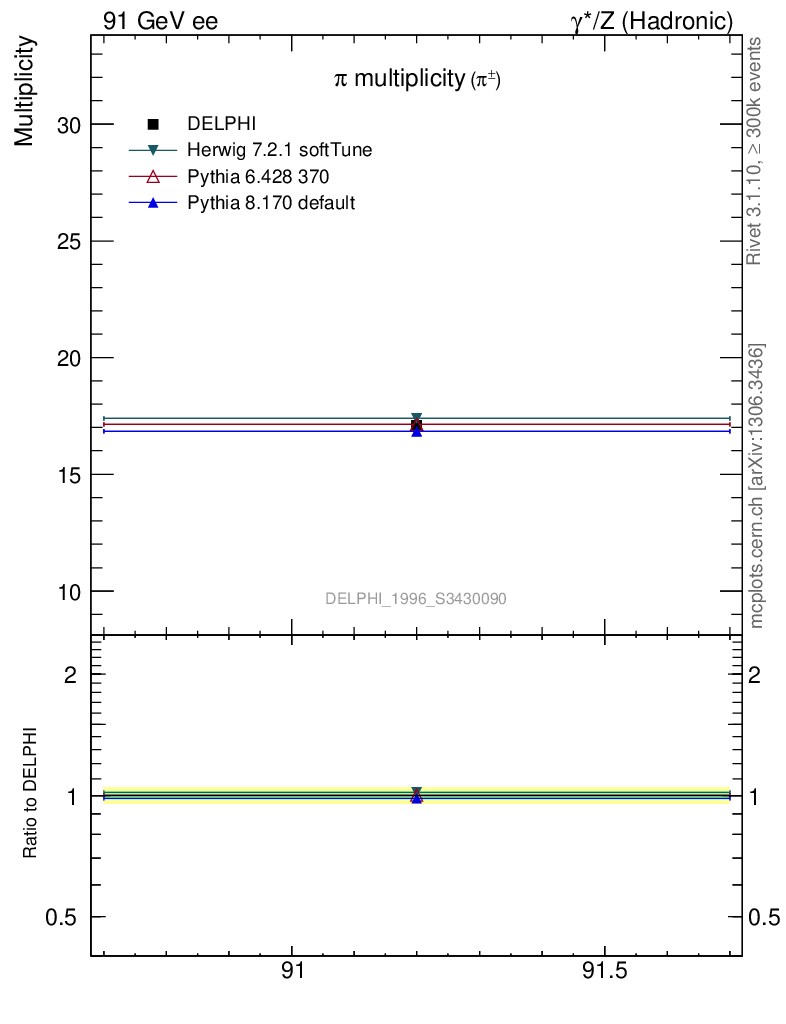 ee : γ*/Z (hadronic) : Identified Particles : π multiplicity