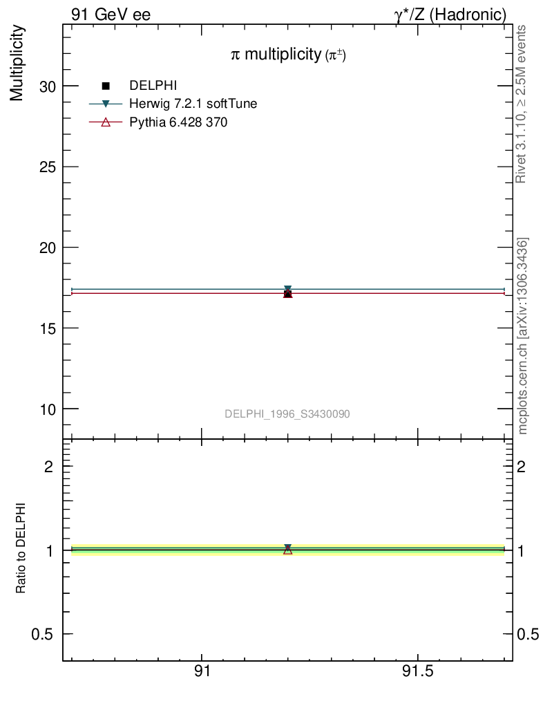 ee : γ*/Z (hadronic) : Identified Particles : π multiplicity