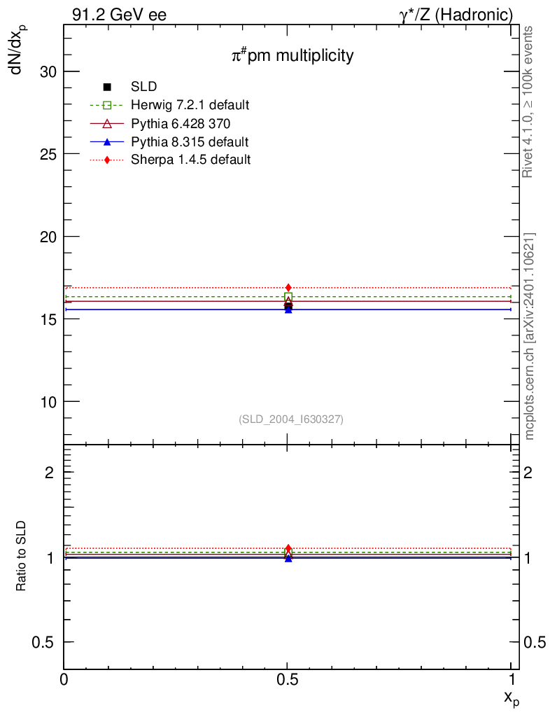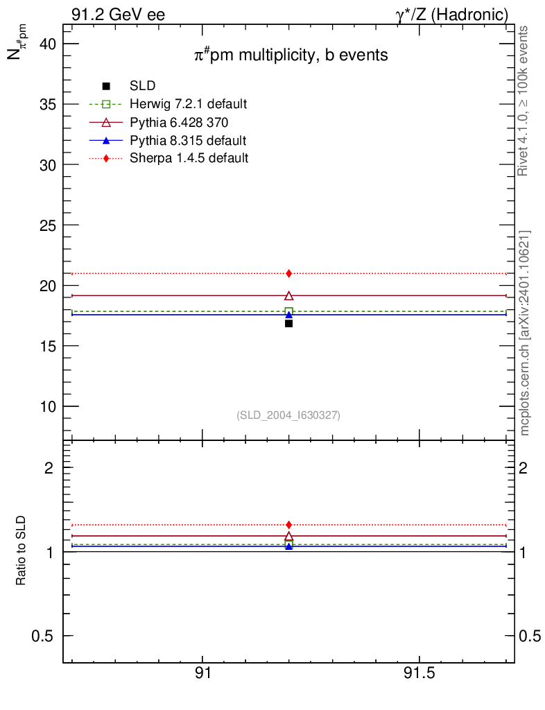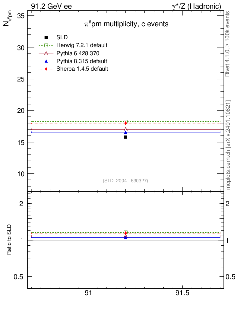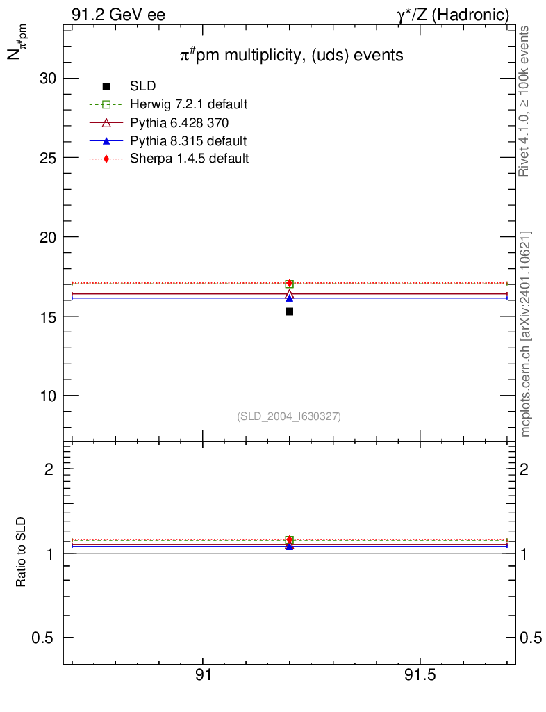 ee : γ*/Z (hadronic) : Identified Particles : π multiplicity