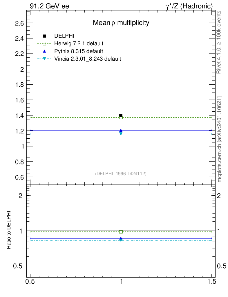 ee : γ*/Z (hadronic) : Identified Particles : ρ multiplicity