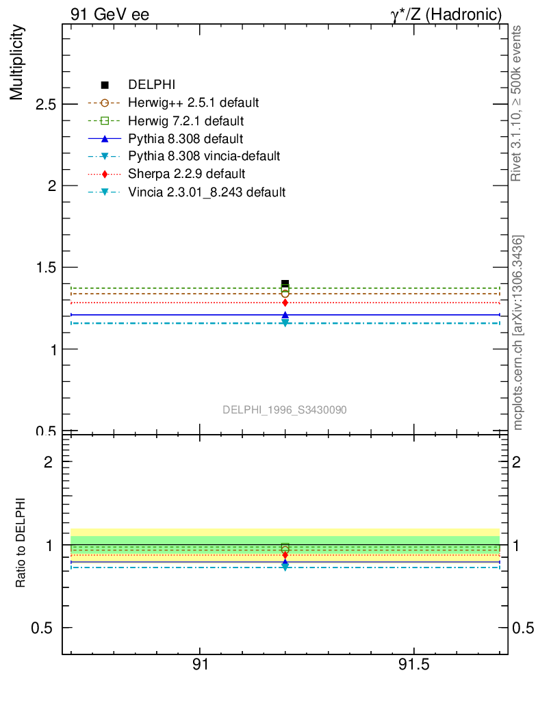ee : γ*/Z (hadronic) : Identified Particles : ρ multiplicity