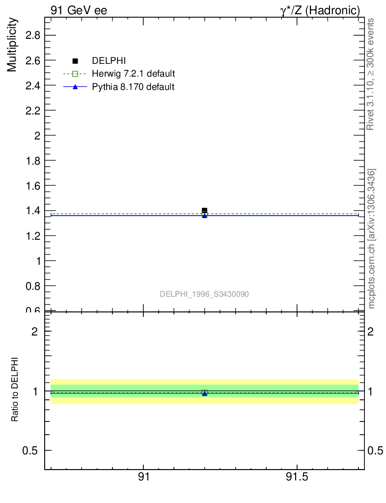 ee : γ*/Z (hadronic) : Identified Particles : ρ multiplicity