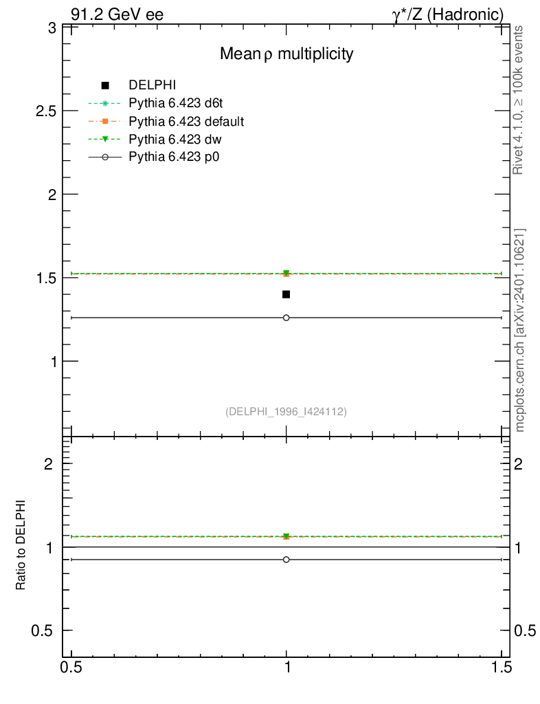 ee : γ*/Z (hadronic) : Identified Particles : ρ multiplicity
