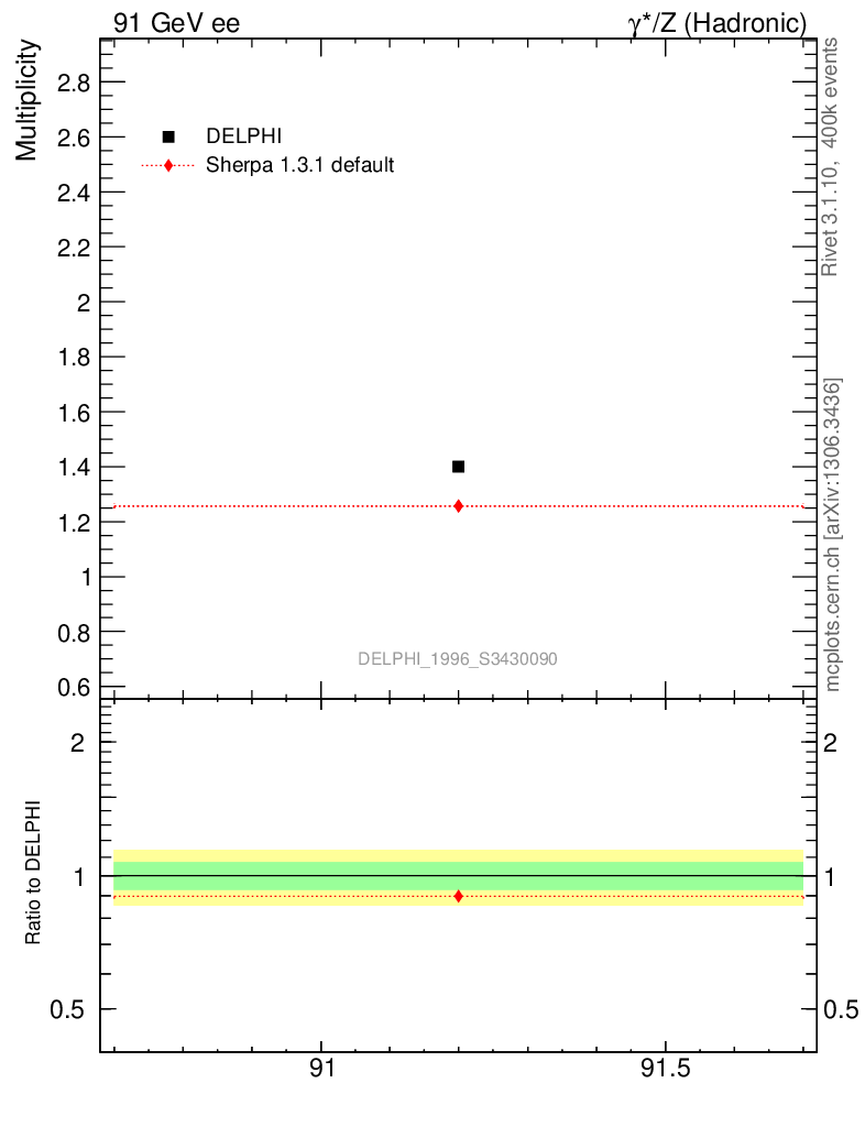 Plot of nrho in 91 GeV ee collisions