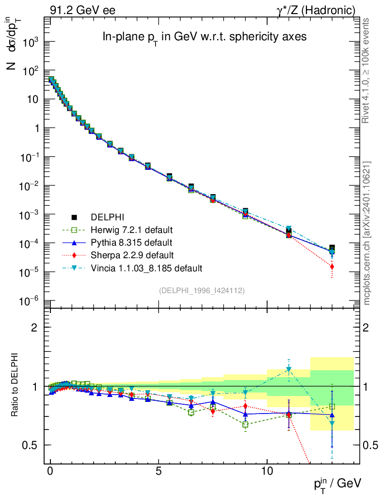 ee : γ*/Z (hadronic) : Charged Particles : pTin (Sph)