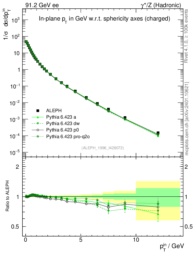 ee : γ*/Z (hadronic) : Charged Particles : pTin (Sph)