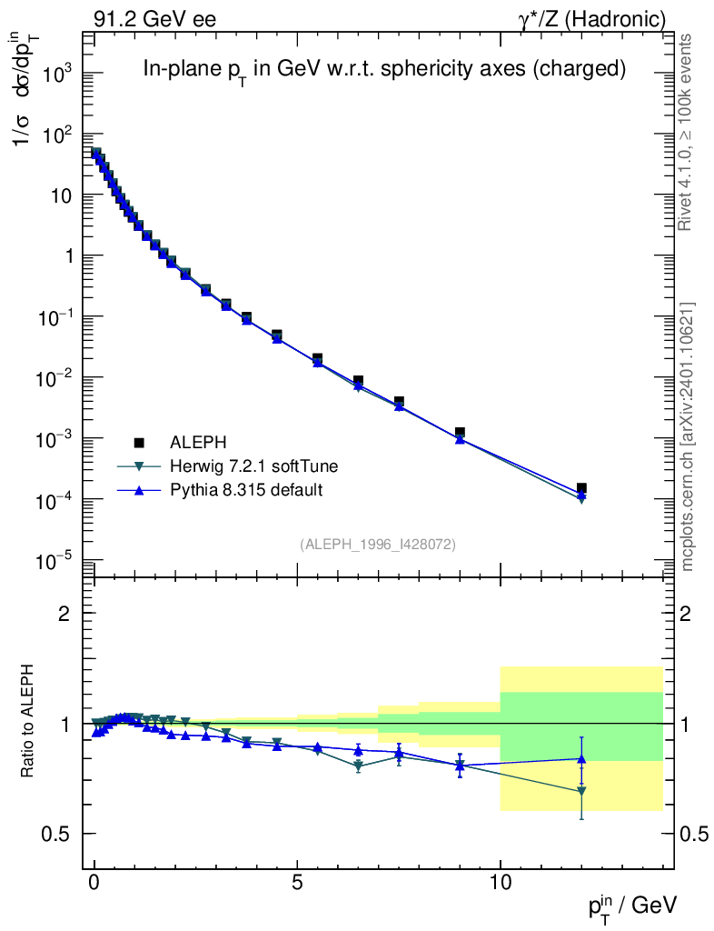 ee : γ*/Z (hadronic) : Charged Particles : pTin (Sph)