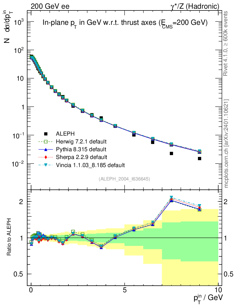 ee : γ*/Z (hadronic) : Charged Particles : pTin (Thrust)