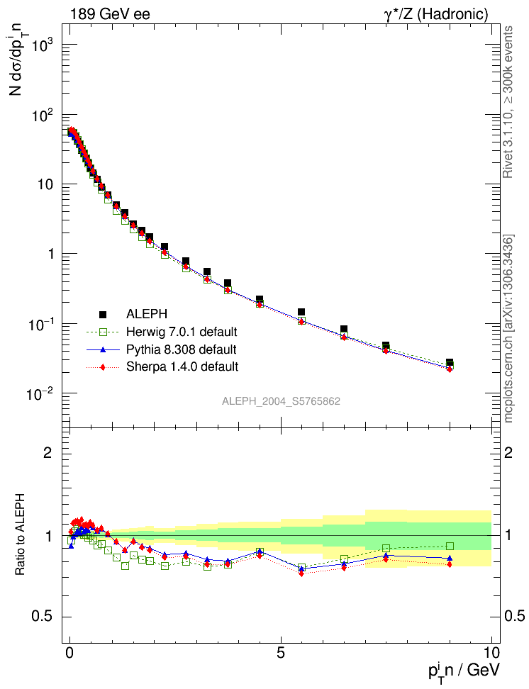 ee : γ*/Z (hadronic) : Charged Particles : pTin (Thrust)