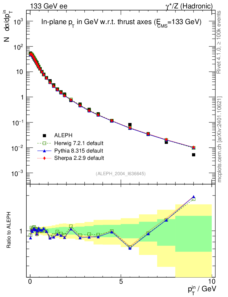 ee : γ*/Z (hadronic) : Charged Particles : pTin (Thrust)