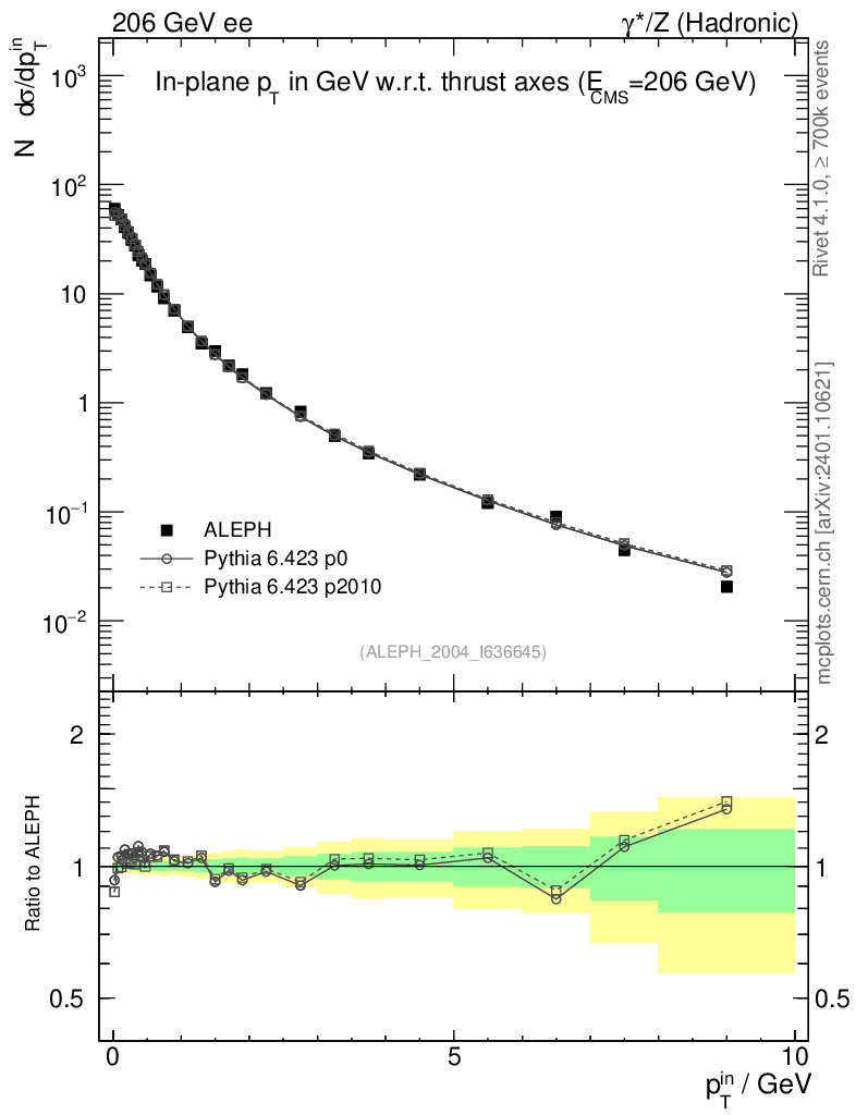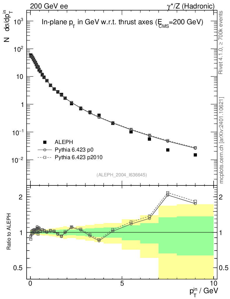 ee : γ*/Z (hadronic) : Charged Particles : pTin (Thrust)