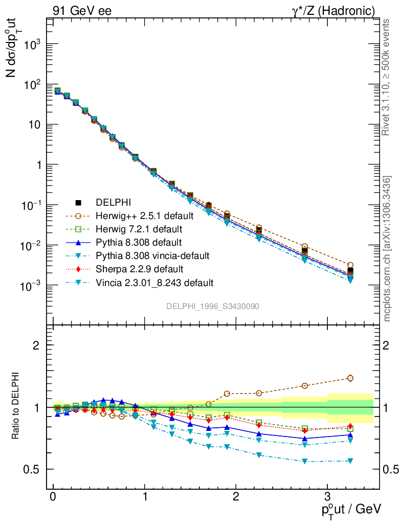 ee : γ*/Z (hadronic) : Charged Particles : pTout (Sph)