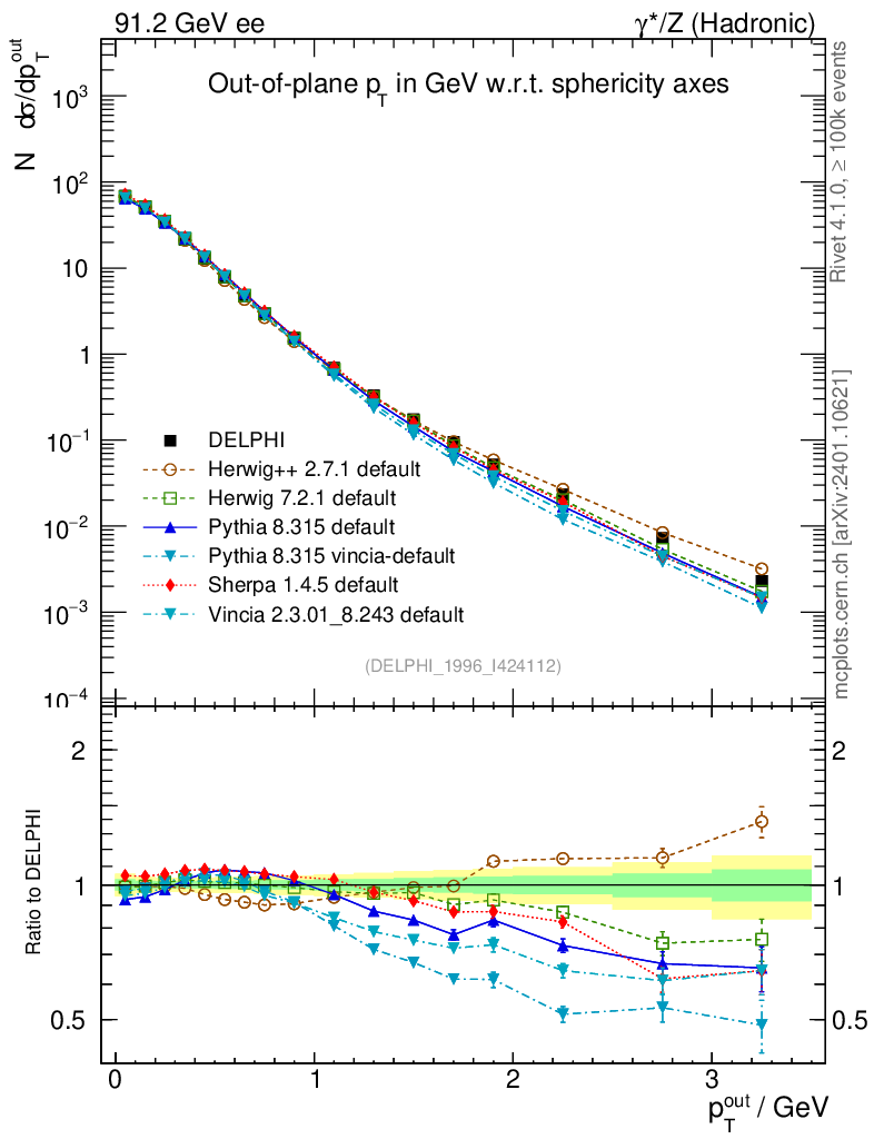 ee : γ*/Z (hadronic) : Charged Particles : pTout (Sph)