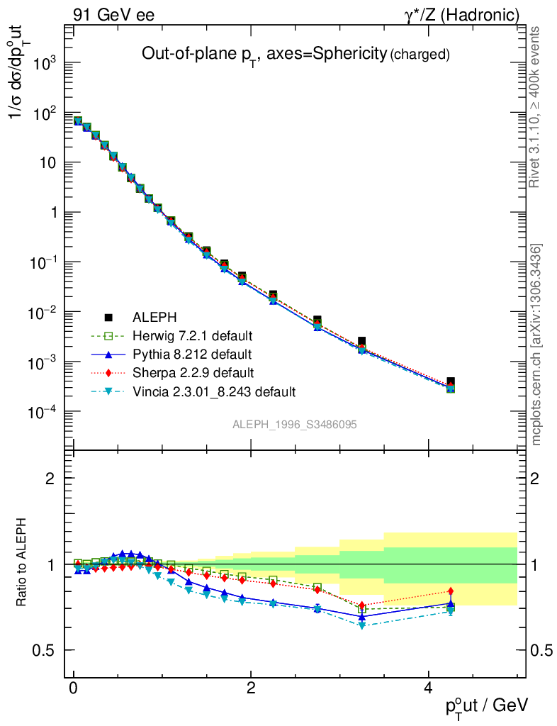 ee : γ*/Z (hadronic) : Charged Particles : pTout (Sph)