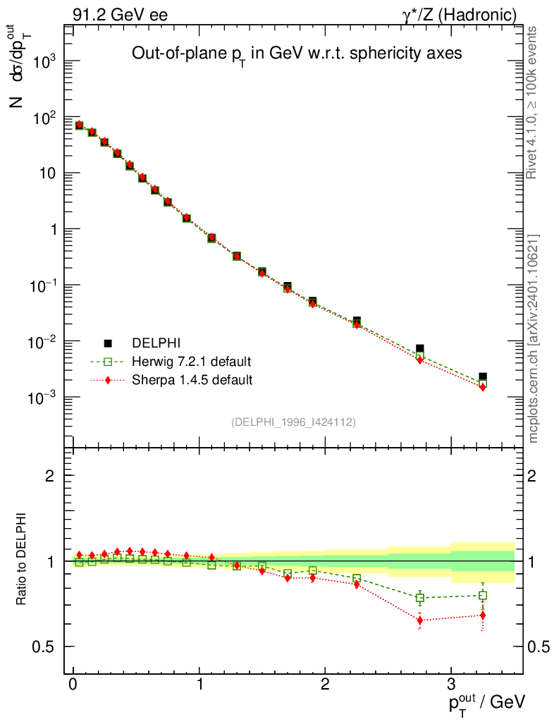 ee : γ*/Z (hadronic) : Charged Particles : pTout (Sph)