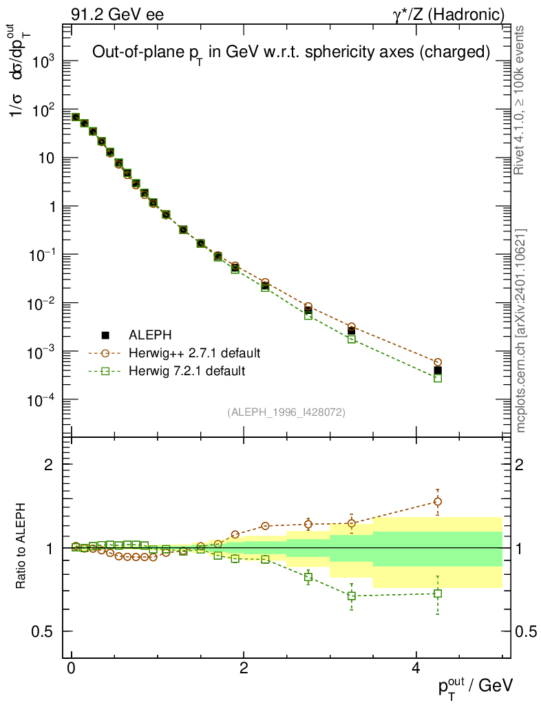ee : γ*/Z (hadronic) : Charged Particles : pTout (Sph)