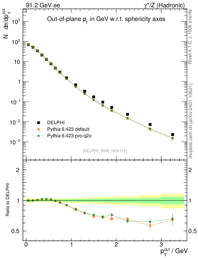 ee : γ*/Z (hadronic) : Charged Particles : pTout (Sph)