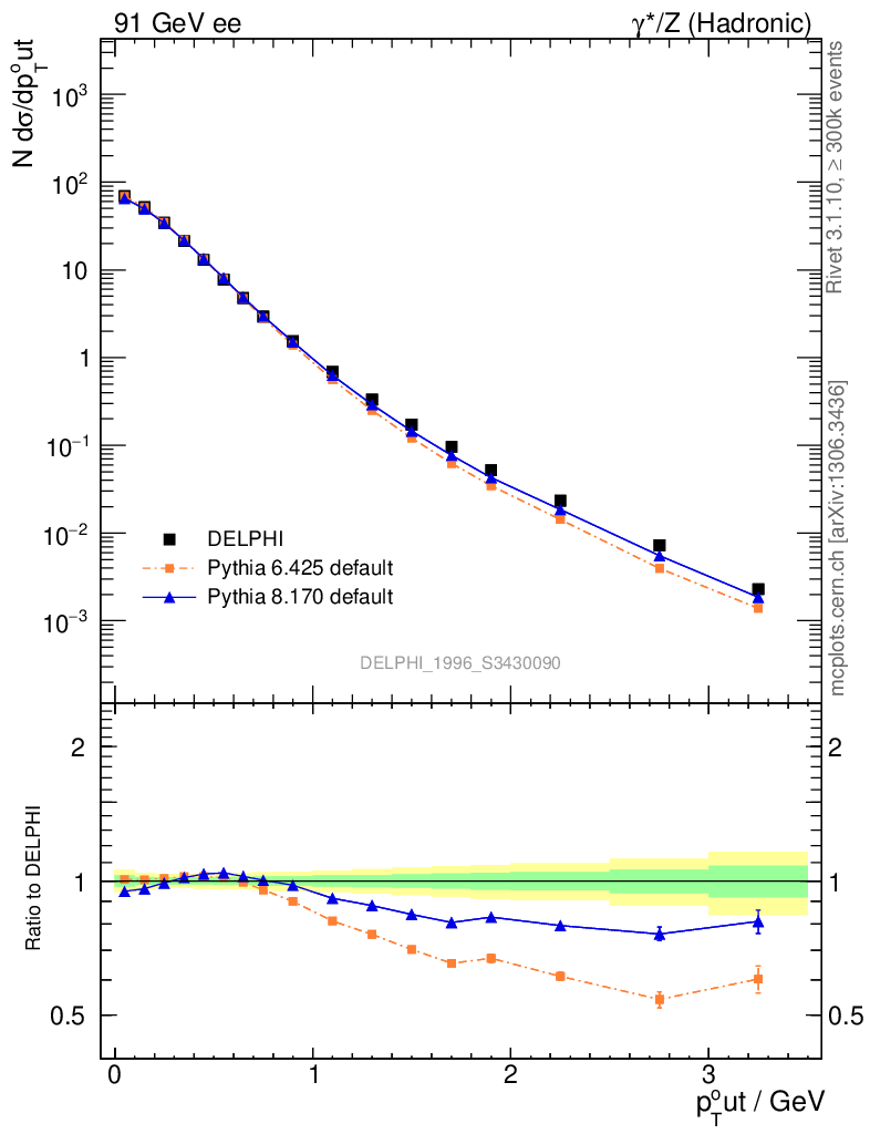 ee : γ*/Z (hadronic) : Charged Particles : pTout (Sph)
