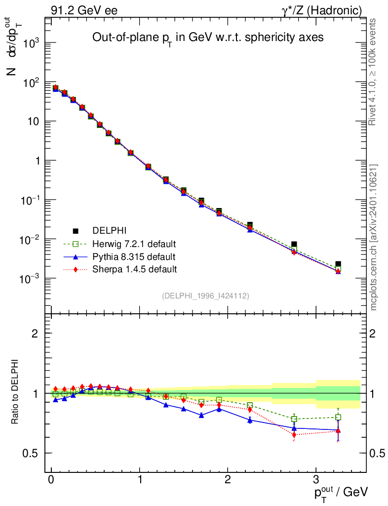 ee : γ*/Z (hadronic) : Charged Particles : pTout (Sph)