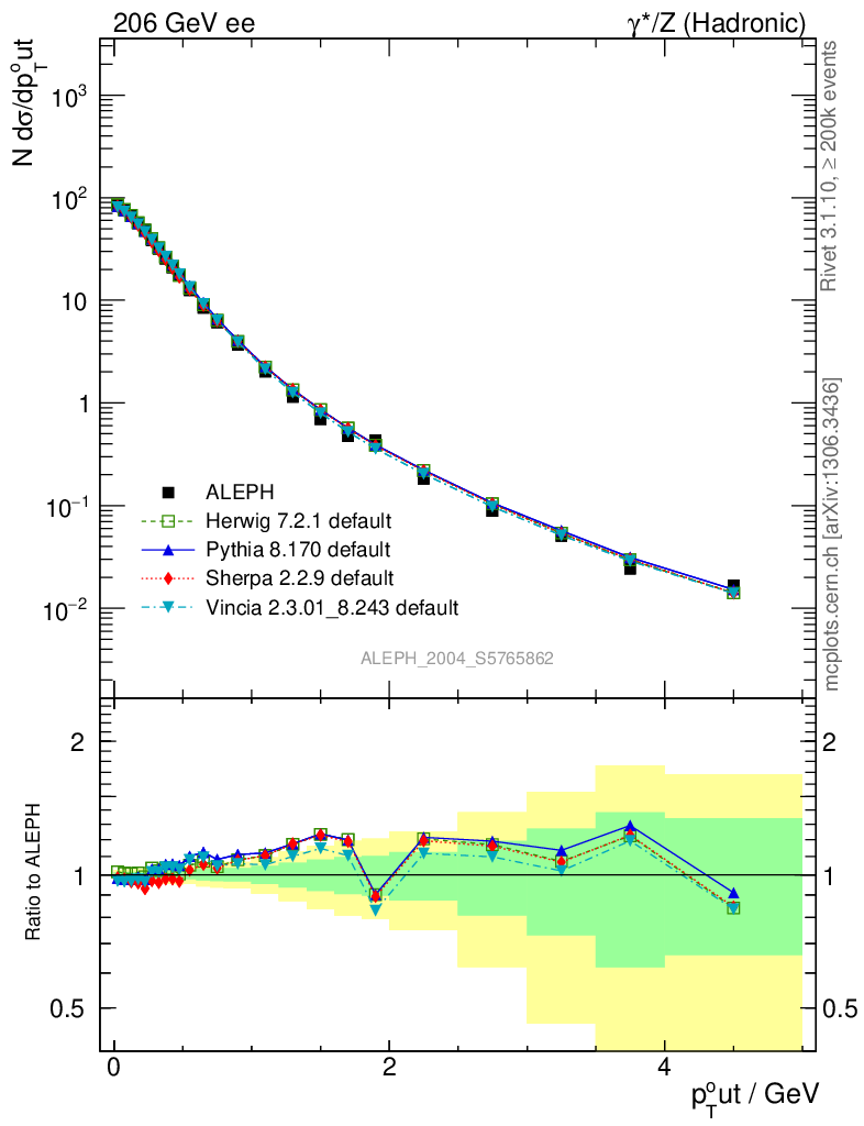 ee : γ*/Z (hadronic) : Charged Particles : pTout (Thrust)