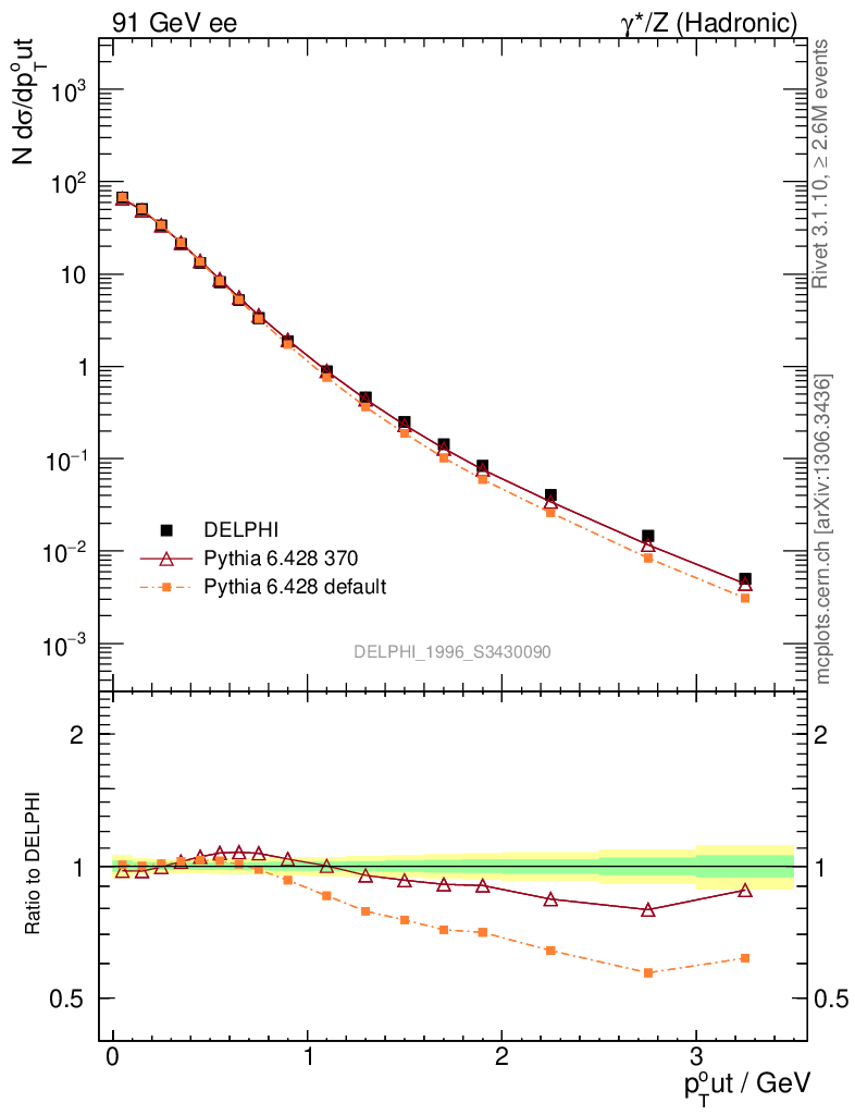 ee : γ*/Z (hadronic) : Charged Particles : pTout (Thrust)