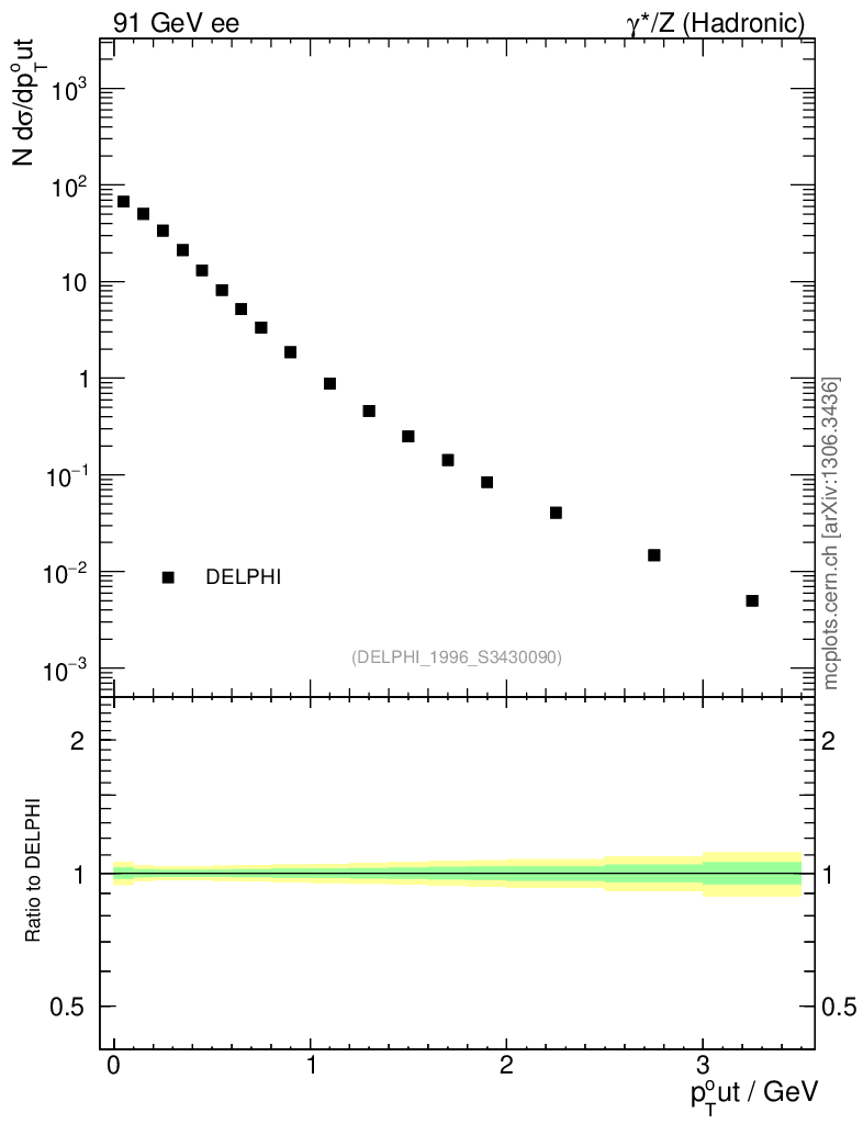 ee : γ*/Z (hadronic) : Charged Particles : pTout (Thrust)