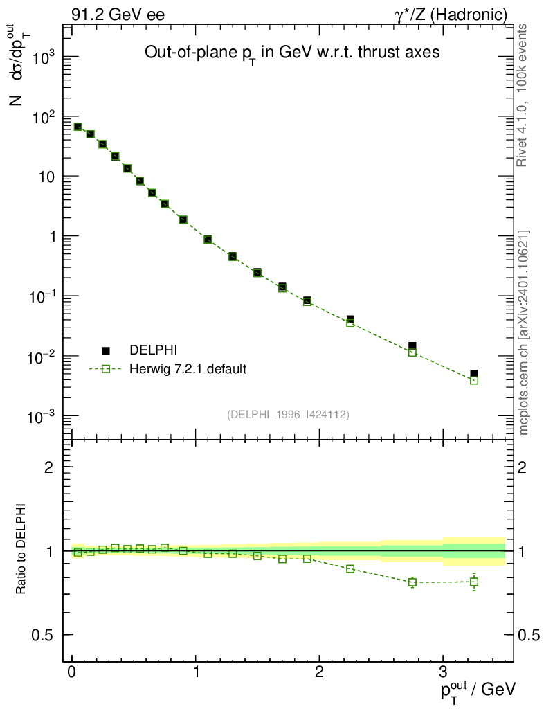 ee : γ*/Z (hadronic) : Charged Particles : pTout (Thrust)
