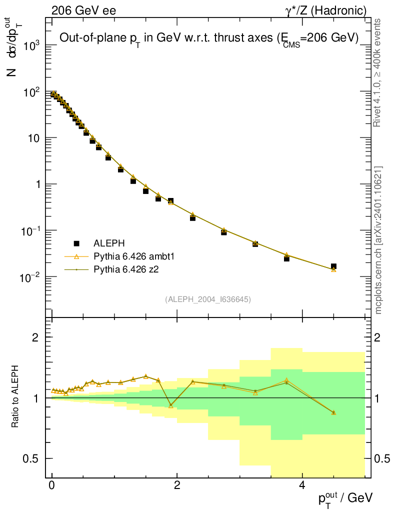 ee : γ*/Z (hadronic) : Charged Particles : pTout (Thrust)