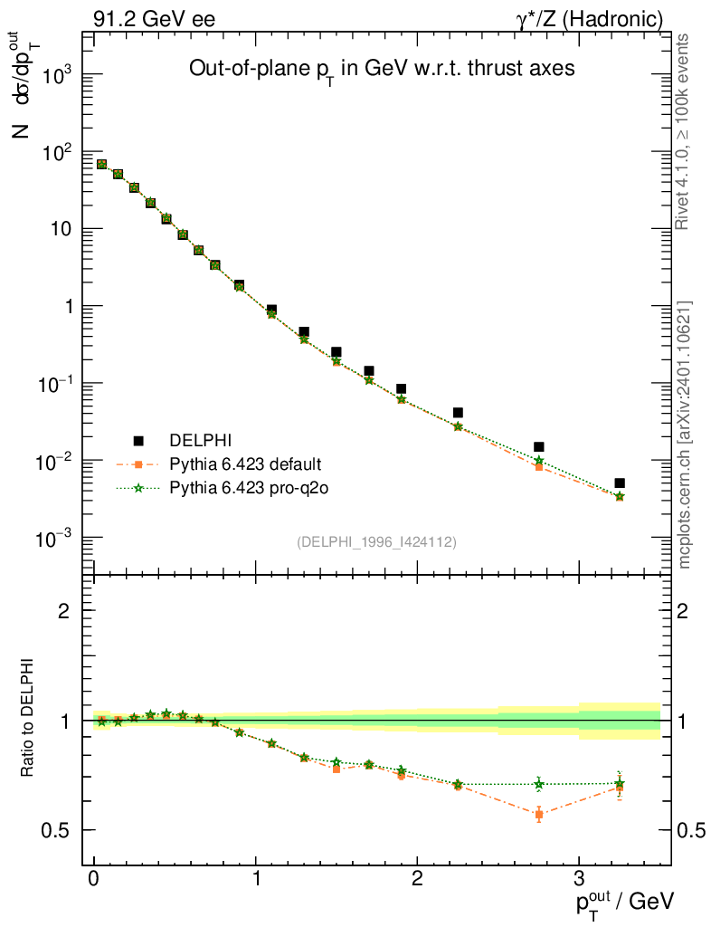 ee : γ*/Z (hadronic) : Charged Particles : pTout (Thrust)