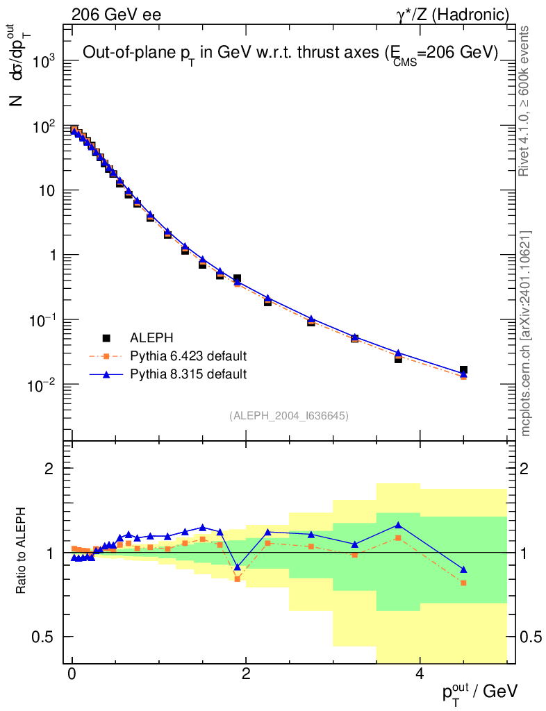 ee : γ*/Z (hadronic) : Charged Particles : pTout (Thrust)