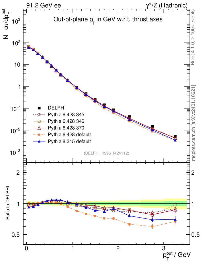 ee : γ*/Z (hadronic) : Charged Particles : pTout (Thrust)