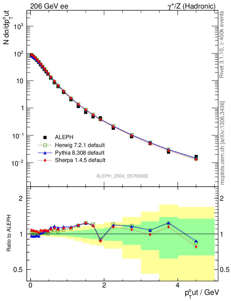 ee : γ*/Z (hadronic) : Charged Particles : pTout (Thrust)