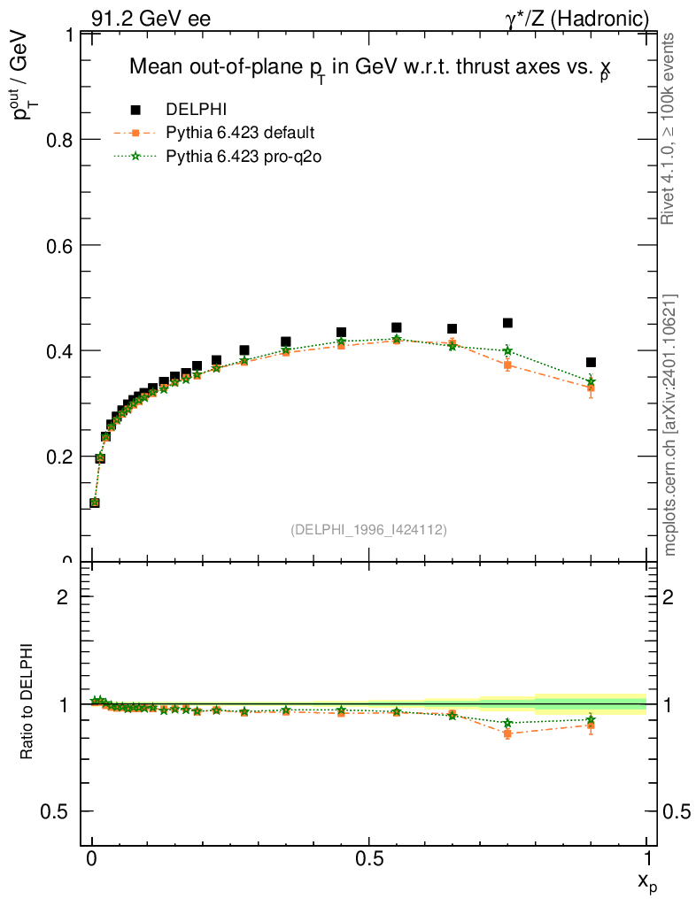 ee : γ*/Z (hadronic) : Charged Particles : <pTout> vs x (Thrust)