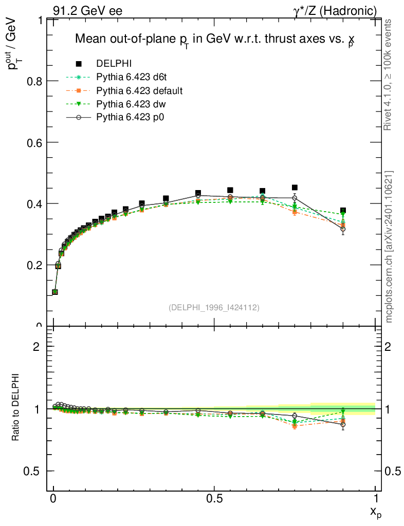 ee : γ*/Z (hadronic) : Charged Particles : <pTout> vs x (Thrust)
