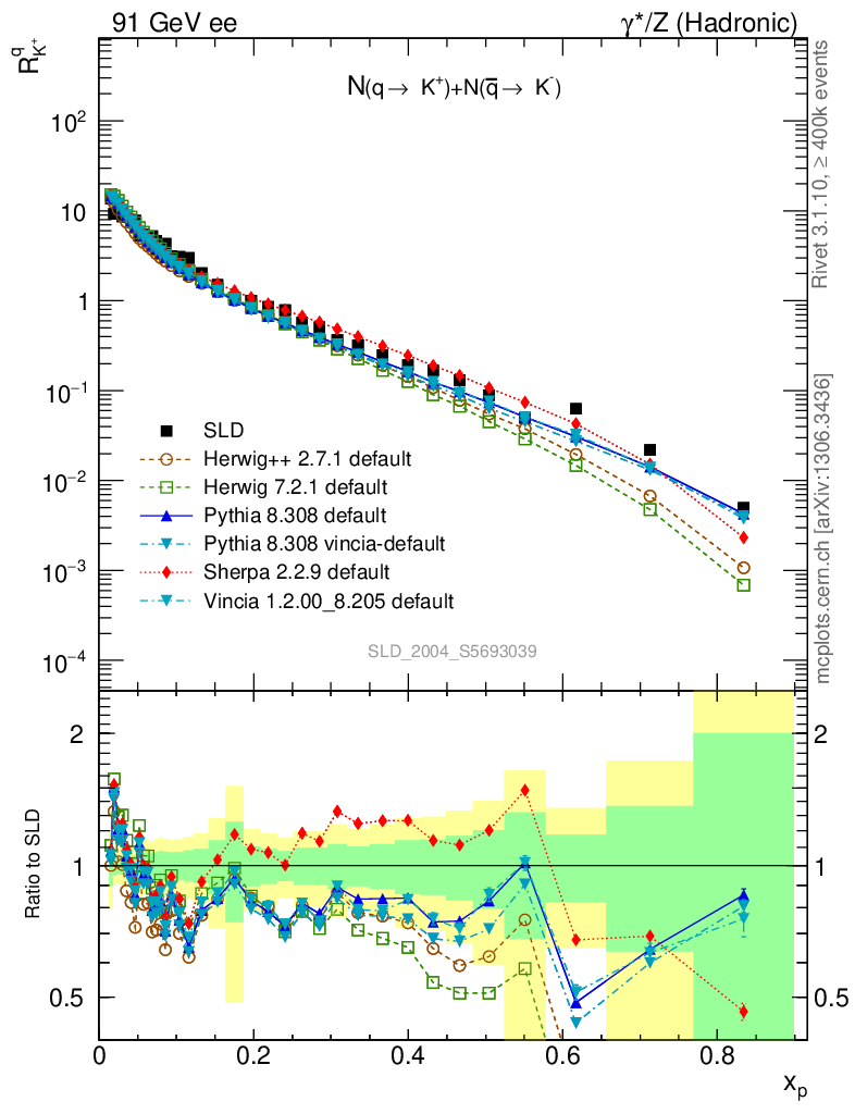 ee : γ*/Z (hadronic) : Identified Particles : N(q→K
