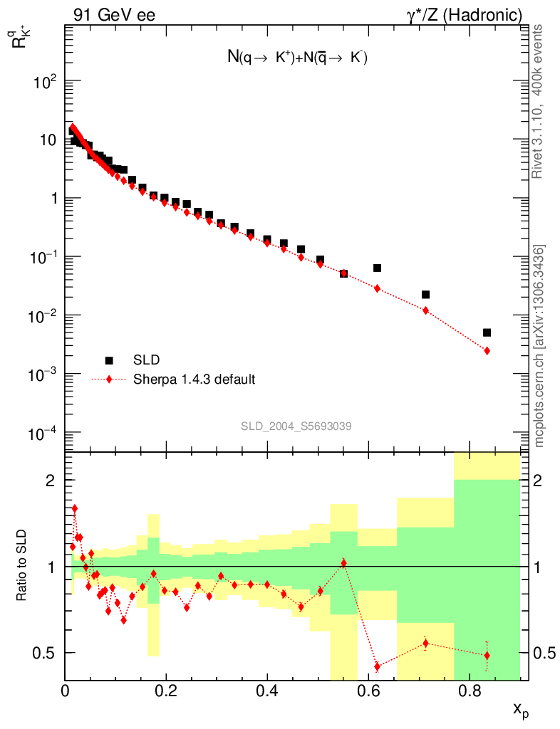 ee : γ*/Z (hadronic) : Identified Particles : N(q→K