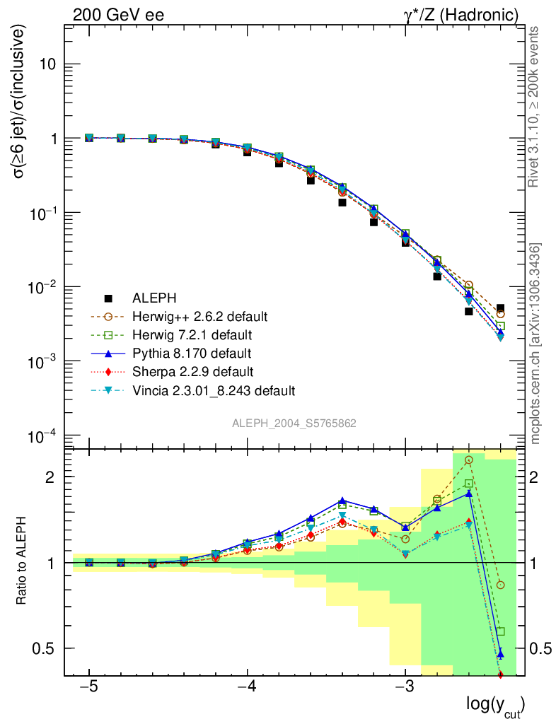 ee : γ*/Z (hadronic) : Jet rates : >Six-jet fraction
