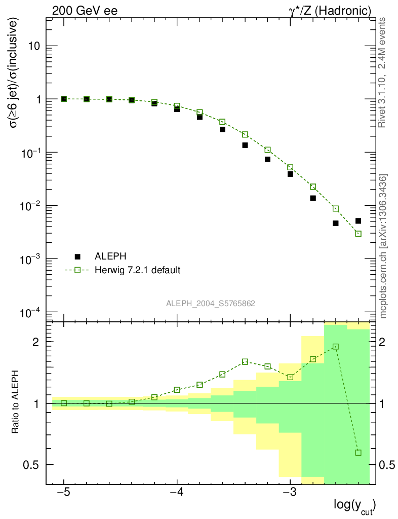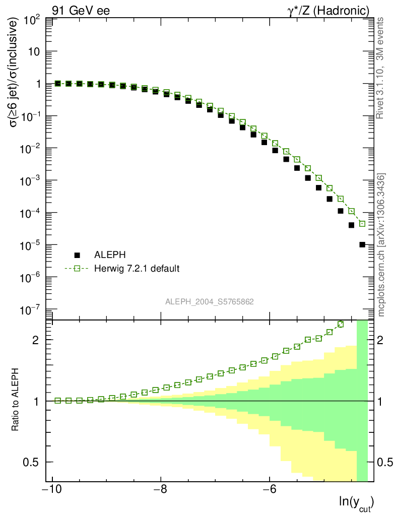 ee : γ*/Z (hadronic) : Jet rates : >Six-jet fraction