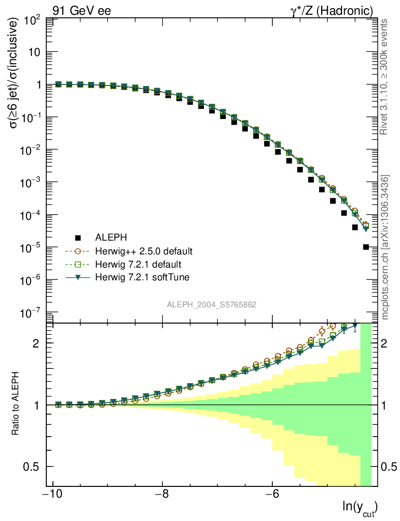 ee : γ*/Z (hadronic) : Jet rates : >Six-jet fraction