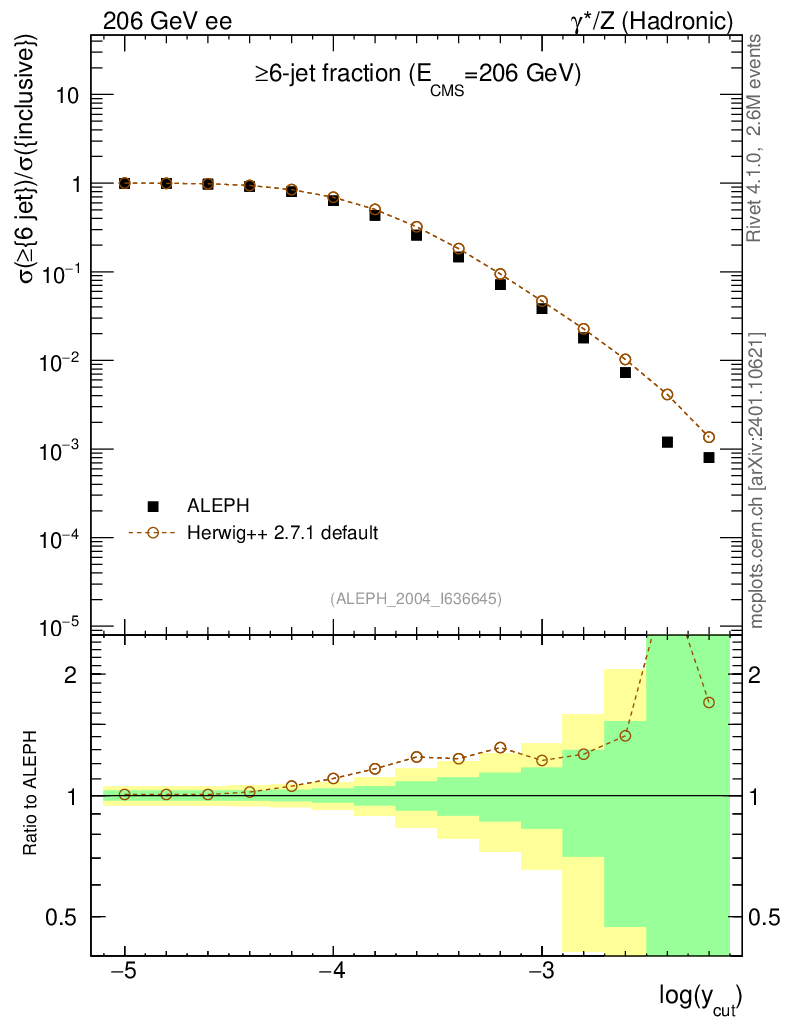 ee : γ*/Z (hadronic) : Jet rates : >Six-jet fraction