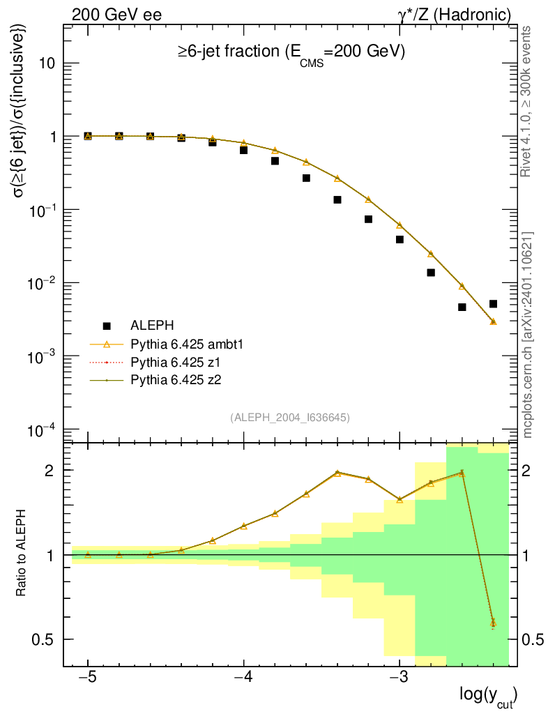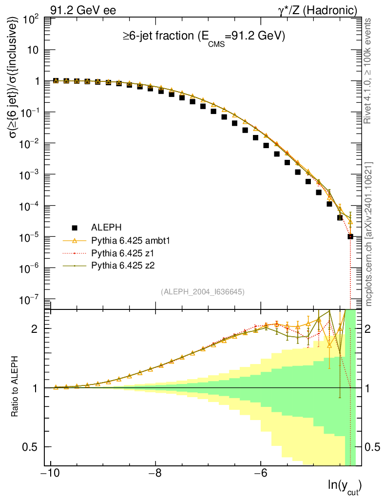 ee : γ*/Z (hadronic) : Jet rates : >Six-jet fraction