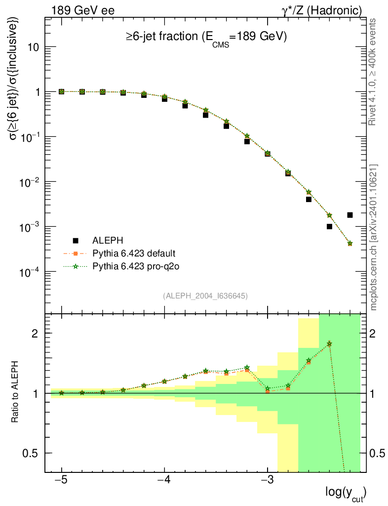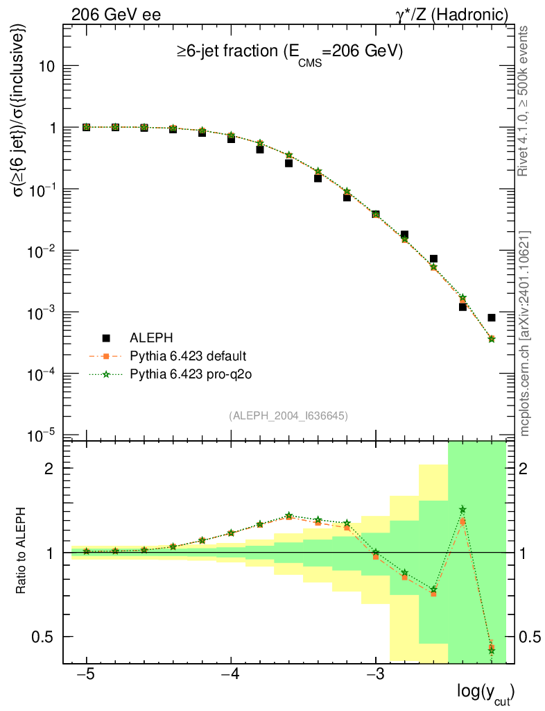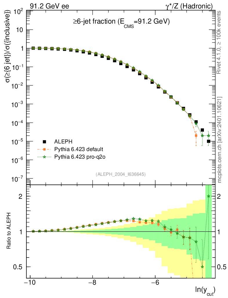 ee : γ*/Z (hadronic) : Jet rates : >Six-jet fraction